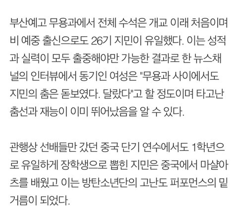 부산예고 (전교 수석 아니고)무용과 수석으로 입학