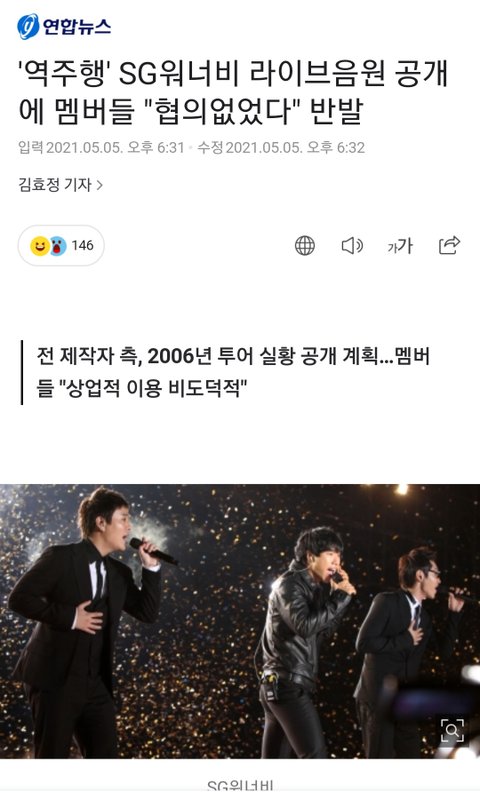 그런데, 얼마 전에 SG워너비 예전 소속사 사장인 김광수가 SG워너비와 동의도 없이 콘서트 앨범을 발매한다고 기사를 냈습니다.
