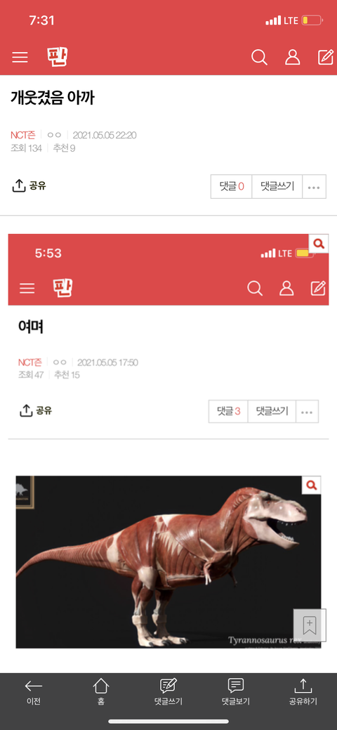 너무 웃겼어 공룡땜에 ㅇㄱㄹ도 없고 우리끼리 진짜 행복하게 공룡 암기하고있었는데 샹