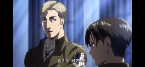 (이 장면이 일본어로는 료카이다인데 리바이가 "료카이다" 라고 말하는 대상이 정말 드문데 그 중 한 명이 엘빈임.. 주군 관계 개발린다)