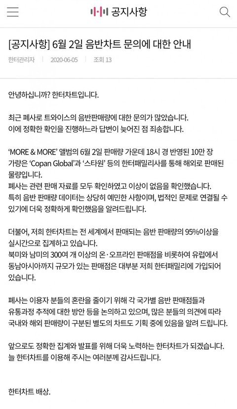트와때도 지랄 하더니 있지 한테도 지랄하네 한터에 문의해라 음판 데이터는 예민한 사항이고 법적인 문제로 커질수 있어서 음판은 정확하게 집계한다고 하니까