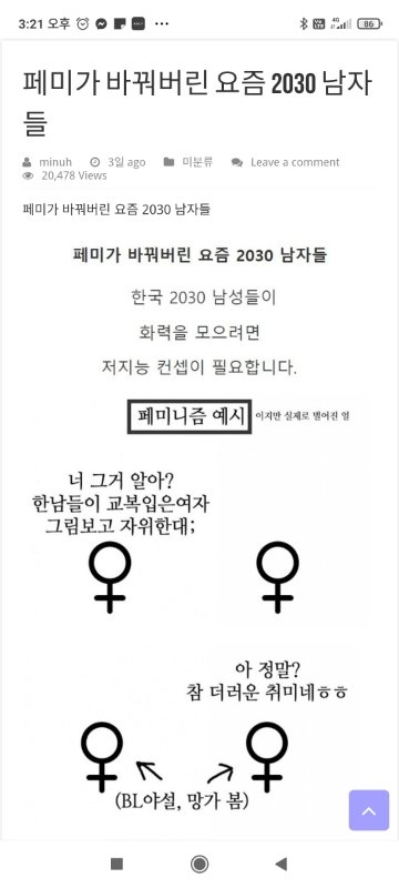 아ㅋㅋ 맞는거 같은데 ㅋㅋㅋ 몇년전에 메갈리아 라는 이상한 사이트가 여러사이트 무지성 비논리로 테러할때 저런말 설마들어주겠냐 ㅋㅋ 진짜 이상한집단 이네 하고 넘겼었는데 이걸 잘들어주더라고 ㅋㅋㅋ 그런게 4년? 5년? 쌓이고 쌓이다가 똑같이 무지성 비논리로 대응하는거인듯 ㅋㅋㅋ 나라 잘~ 돌아간다 ㅋㅋ