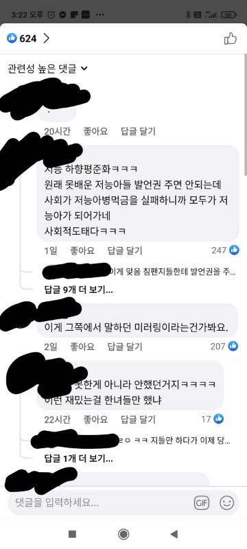 페북 댓글 진짜 가관임... 충격 먹음