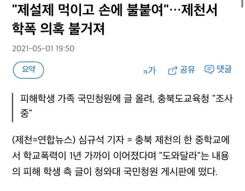 현재 논란되고 있는 '제천 학폭' 사건