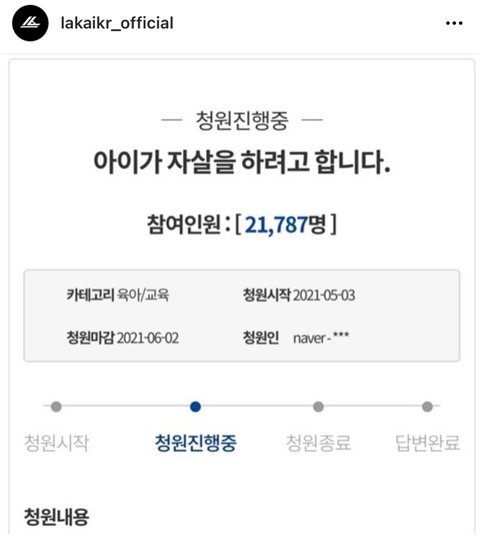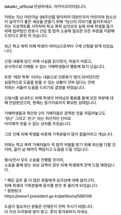 (피해 학생 어머니가 라카이코리아로 신청했다고 함)