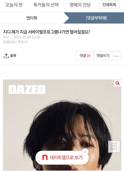 엔터에 지용이글 818조회수라서 급 캡쳐