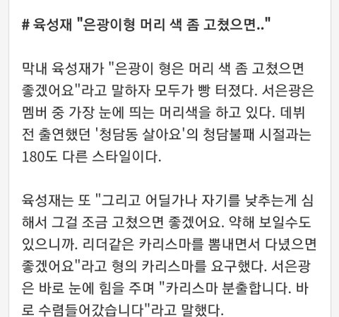 응강이형 머리색을 바꾸는것도 아니곸ㅋㅋ고쳤으면 좋겠뎈ㅋㅋ