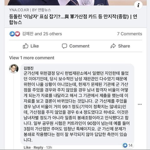 난 이게 제일 웃김 여자들이 우겨서 없앤 거 아니고 군가산점이 판사들이 보기에도 불공평해서 없앤건데 맨날 페미가 그랫다고 웅앵... 그러니 이딴 소리나 나오지 ㄹㅇ 사회 안 나와봄???