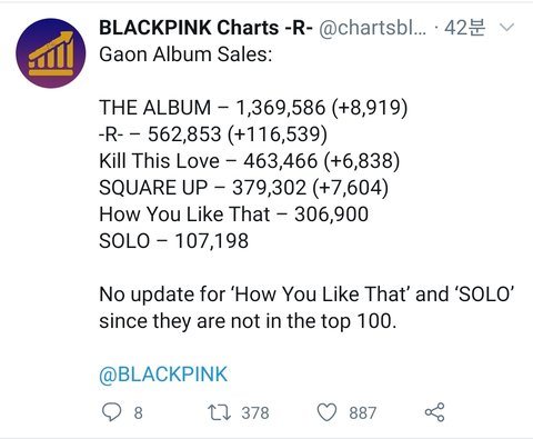 블핑 전체 앨범은 말할것도없이 커하고 로제랑 SOLO 판매량 무슨일..? 거의 5배가넘어..ㅠㅠ박로챙 ㄹㅇ대단혀 팬덤 확실히 커지고 코어력이랑 국내 다 잡은듯 .. 주변에서도 로제만 얘기하고 암튼 허ㅏ제성도 쩔그 ㅜㅠ