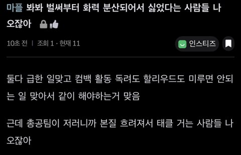 여긴 우리가 처음부터 총대 맨 찌찌 아니까 욕 적은데 커뮤들 마다 지금 전부 총대 얘기에 사서 창조논란 만든다고 말 ㅈㄴ 나옴 할리우드 반대 목적으로 모인건데 화력 ㅈㄴ 떨어질듯