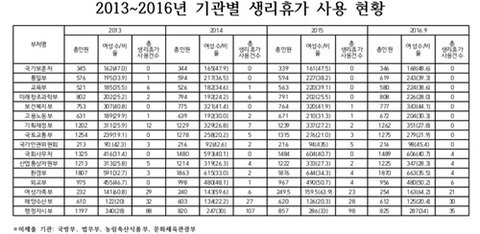 생리휴가 안쓰는 여직원이 대다수라는 증거가 넘쳐남