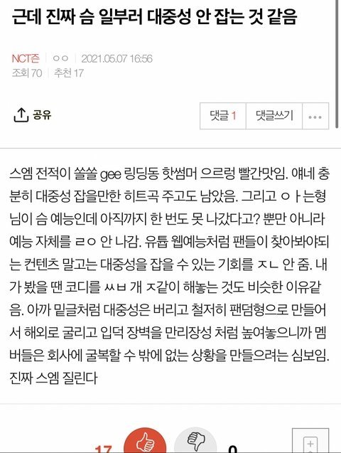 아니 엔시티는 딱봐도 대중성 노리고 나온 그룹이 아닌데..
