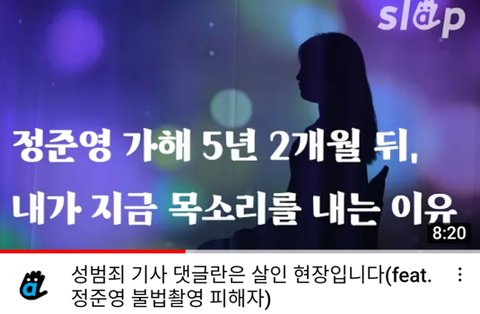 유튜브보다가 예전 정준영 불법촬영피해자 분이 인터뷰하신걸 보게되었어. 16년 당시 고소를 했다가 취하 하셨던 분.