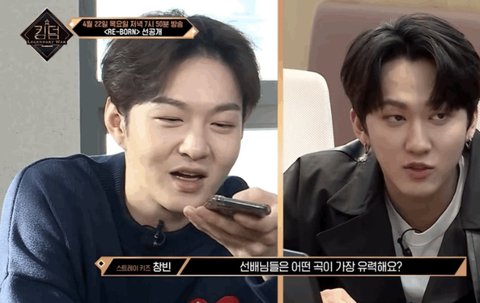 3. 해맑게 웃으며 "비투비 선배님" 을 부르는 스키즈 방찬.