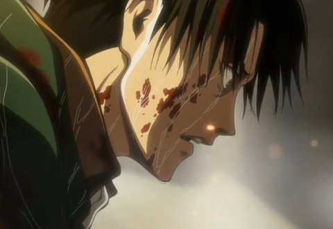 리바이가 말하는 도중, 갑작스럽게 손의 실루엣이 다가왔고 리바이는 한순간에 뺨을 맞고 말았음. 묶여 있지만 않았다면 피할 수 있었겠지만 단단히 묶여 피할 수도 없었음.