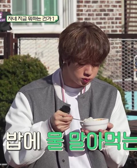 주식이 고기인 석지니는삼겹살 기름이 살짝 들어간 김치볶음밥을 먹다가물말아서 맨밥을 먹음