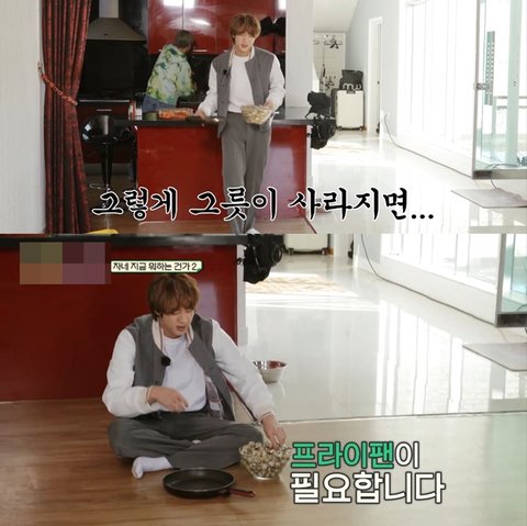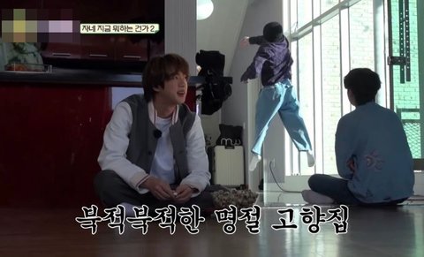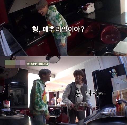동생이 김치전 부친다며 김치를 찾아 달라고 따라다님