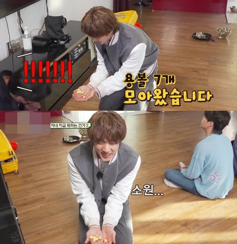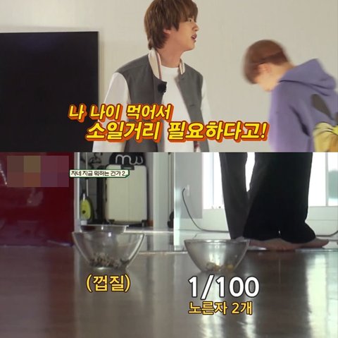 와중에 메추리알을 들고 멀리 달아나는 막내