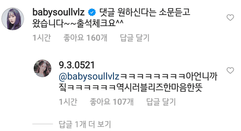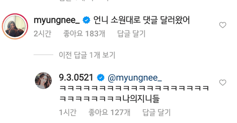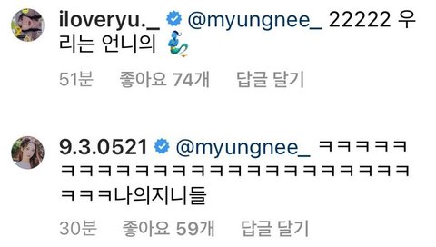 댓글 하나로도 이렇게 사이좋은거 티나는거 너무 좋아ㅠㅠㅋㅋㅋ