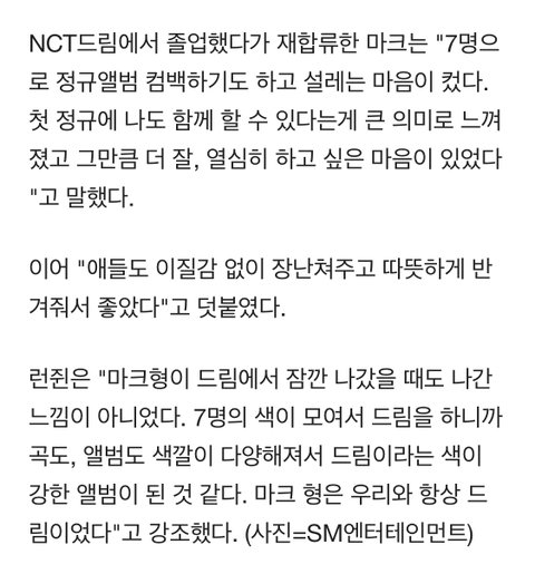 얘들아,, 마크형은 우리와 항상 드림이었다 라고