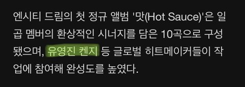 애들 앨범 참여진에 유0진하고 켄z1 있대
