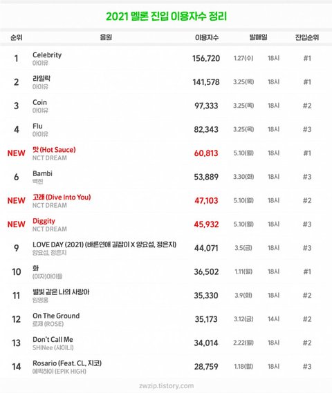 드림 2021 멜론 역대 진입 이용자수 5위