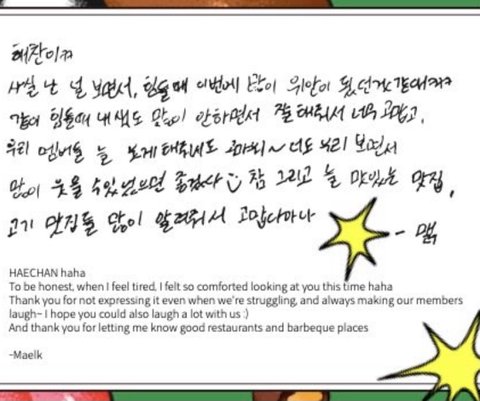마크가 해찬이한테 쓰면서 본인을 맭이라고 적은거봨ㅋ