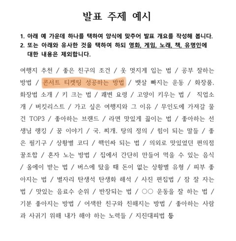 급해!!ㅠ내일 이걸로 발표 하는데 발표한다고 오늘 말해주심