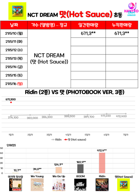 처음 멜론 1위도 라이딩때 드림이 최초 였음