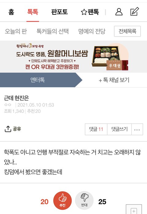 그러니까 톡톡엔 현진 관련 질문 일단 다 먹금하고 팬톡으로 오라고 해줘