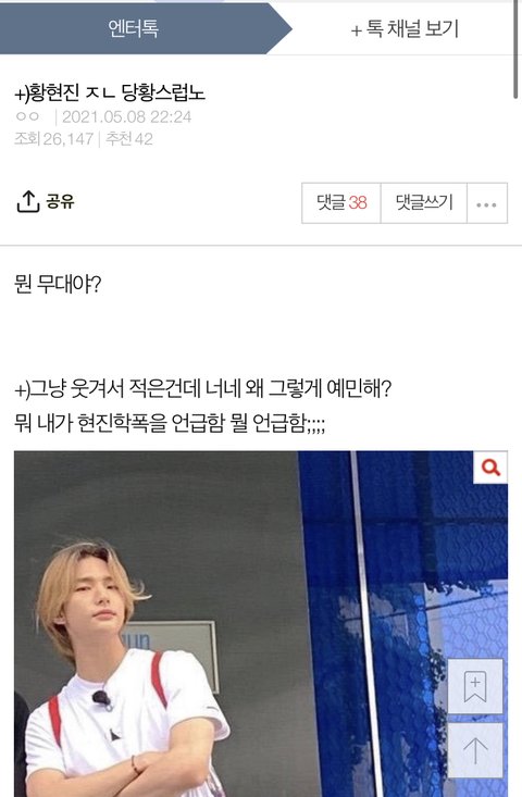—————— 현진 안티 먹금 —————— 하고 어그로 아니면 팬톡 와서 질문 쓰라고 해줘
