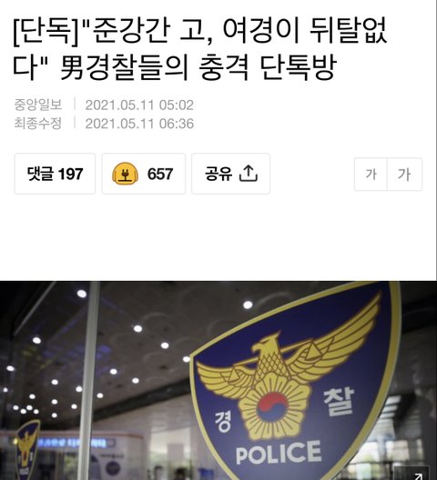 성적욕구를 절제하지못하거나 성인지감수성 자체가 빻은 남자경찰들이 너무 많음