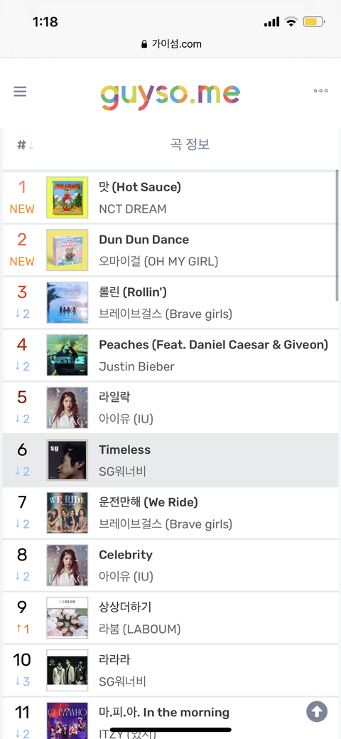 지니 일간 차트 1위