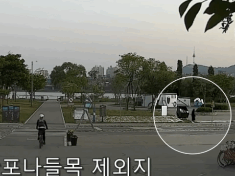 근데 또 마침 자전거를 타신 분이 그곳에 오시고 유심히 봤으나 무슨 행동을 하는지 잘 모르겠다고 판단.