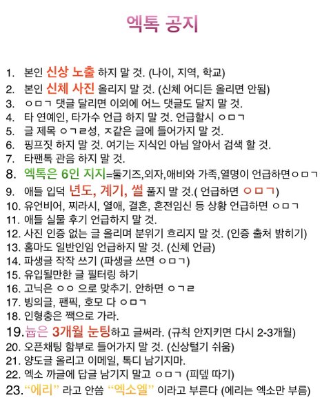 딱딱하다고 욕 할거면 걍 뒤로가기 눌러 커뮤 새로 시작할때 공지 있으면 지키는게 예의임 당장 판만 봐도 ㅁㄱ 못 한다고 늅들 조카 잡던데 엑톡도 똑같음 지금 닥눈삼이고 뭐고 할것도 없고 공지 내용만 지키셈 애들 욕 하는글 들어가지 말고