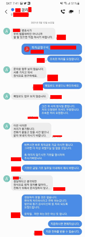 근데 변호사는 답이 없고 그 회사 사장의 동생 경리색히가 전화가 옴