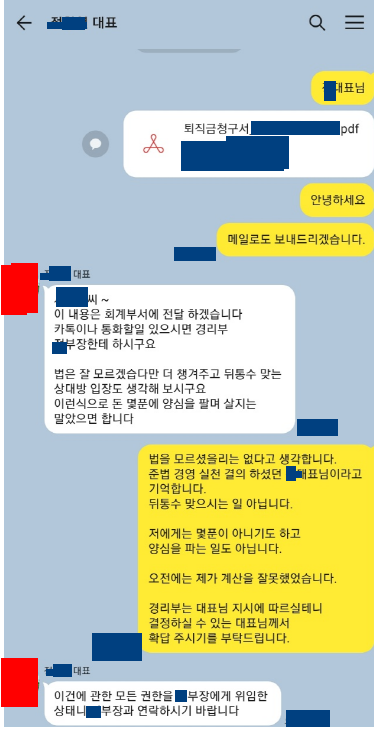 '보너스 많이 줄테니 퇴직금 달라 하지 마라 . 달라고 하면 민형사 고소하고 소송해서 보복하겠다 '
