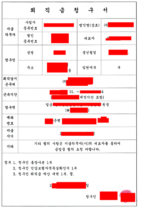나 '퇴직금 청구하려는데 좀 도와주셈 '