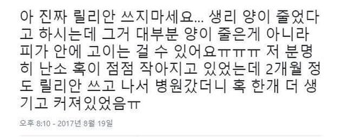 한참 뉴스에서 생리대에 발암물질이 나왔다고 떠들썩 했잖아근데 정작 제품명을 가르쳐주지 않아서 더 큰 문제가 됐는데