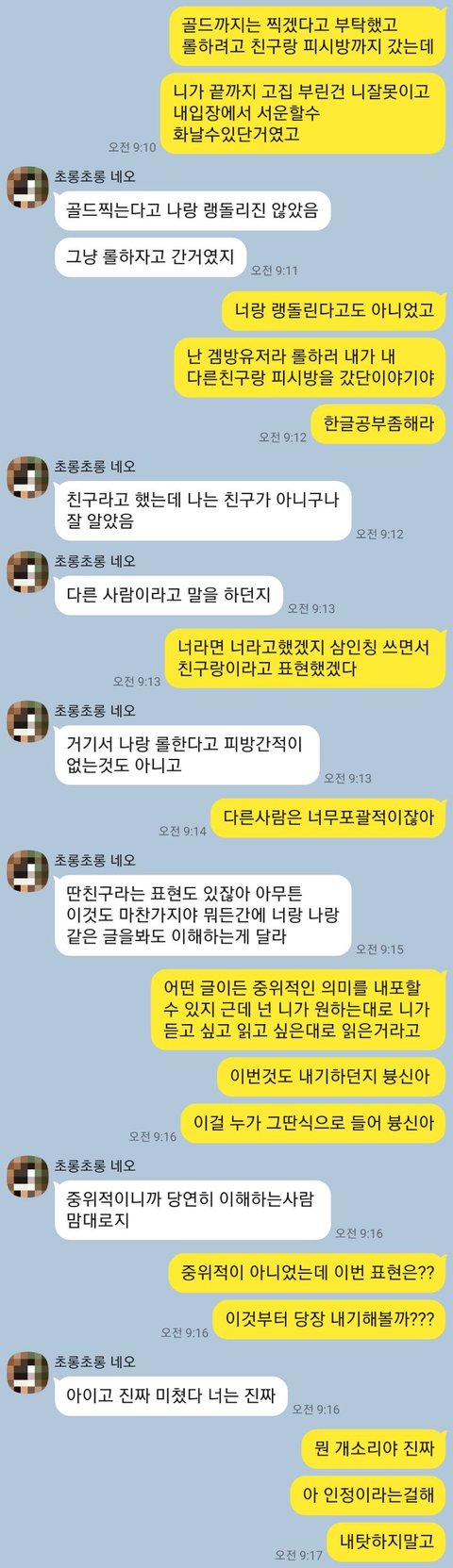 '롤하려고 친구랑 피시방까지 갔는데'라는 이야기가 중위적인 표현이며 그 친구가 자기를 지칭할수도 있다고 이야기를 하는데