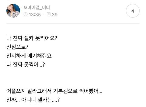 진지하게 궁금하다는게 자기 셀카 못찍냐고ㅋㅋㅋ