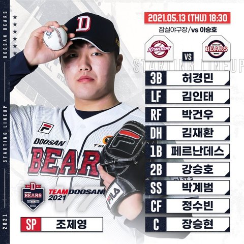 5. 13 두산 베어스 라인업