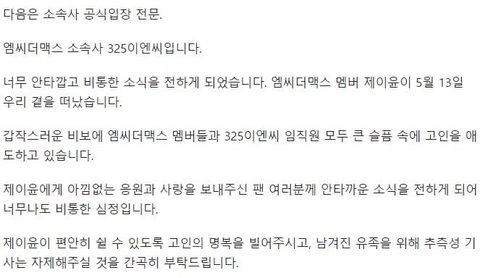 헐 엠씨더맥스 멤버 사망,,
