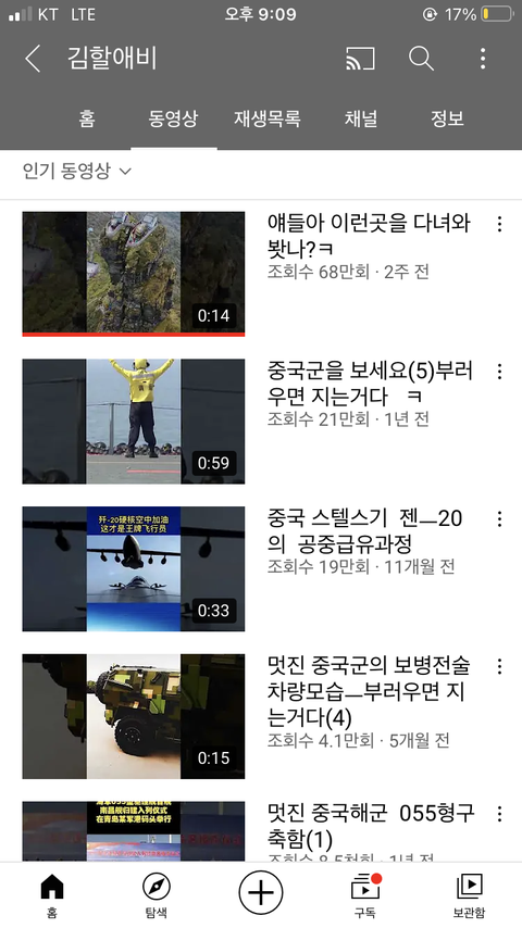 요즘 유튜브 숏츠에 유독 이렇게 한국어로 중국 영상 올리는 채널들 많아졌지않아?? 채널명도 한국어고 내용도 한국언데 중국 영상을 올림..