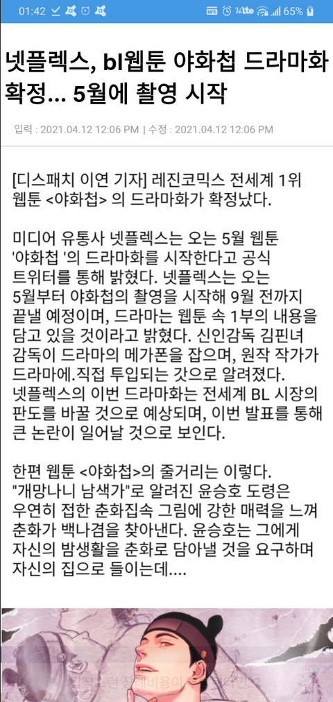 5회 야화첩 드라마화 확정 기사뜸;;;;