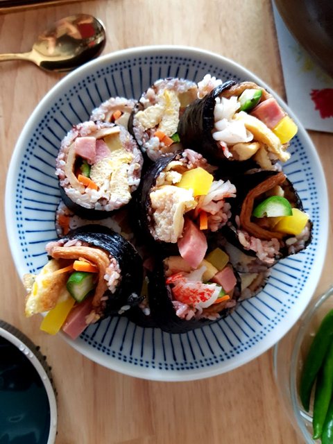 --------------------------------------------------------------------------------집에 있는거 최대한 활용해서 김밥쌉니다.김밥, 튀김에 미쳐 있는지라 코로나가 계속되니 확찐자가 완성형이 되고있어 요즘은 조금 자제하려고노력중입니다.