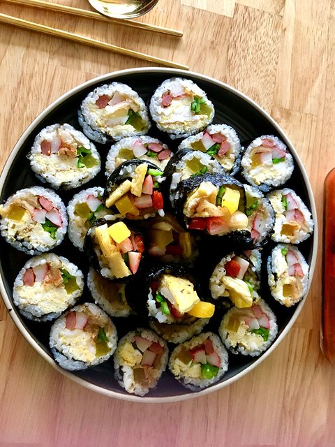 빨간색 재료를 넣자내손은 똥손이라 '김밥이나 비빔밥'이나 하시는 분들은빨간색 재료를 좀 풍부하게 쓰면 비주얼은 괜춘해 보입니다.빨간색 없는 김밥을 싸니 이건 맛은 있는데 뭔가 20프로 정도 빠진 느낌이더군요.