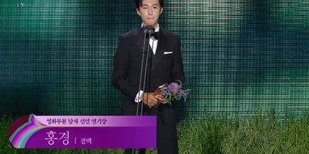 영화 <결백>으로 영화부문 남자 신인 연기상을 수상한 홍경