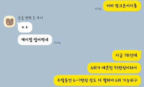 이랬는데 오늘 93만장 보고 너무 놀람... 내가 우릴 너무 약하게 봤나 봐... 사과할게...