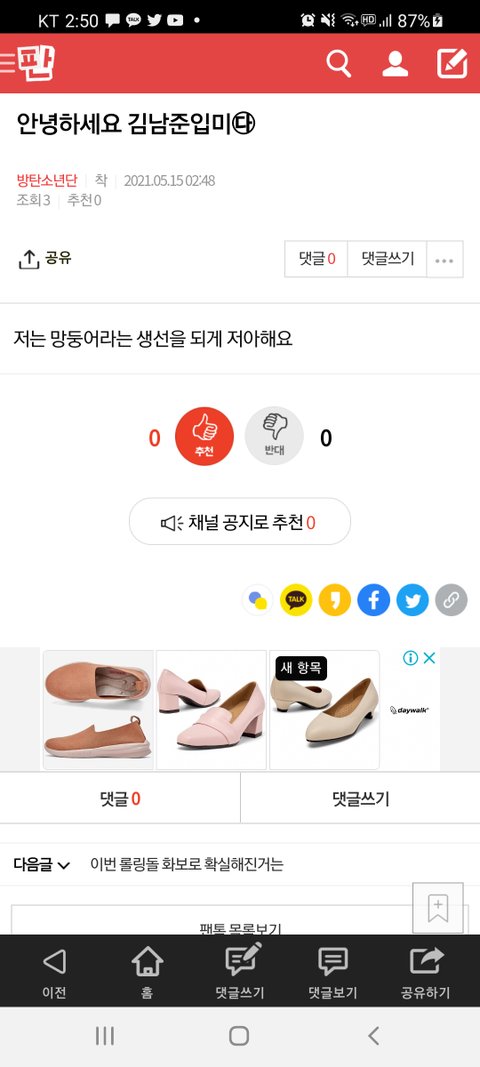 안녕하세요 김남준입미㉰